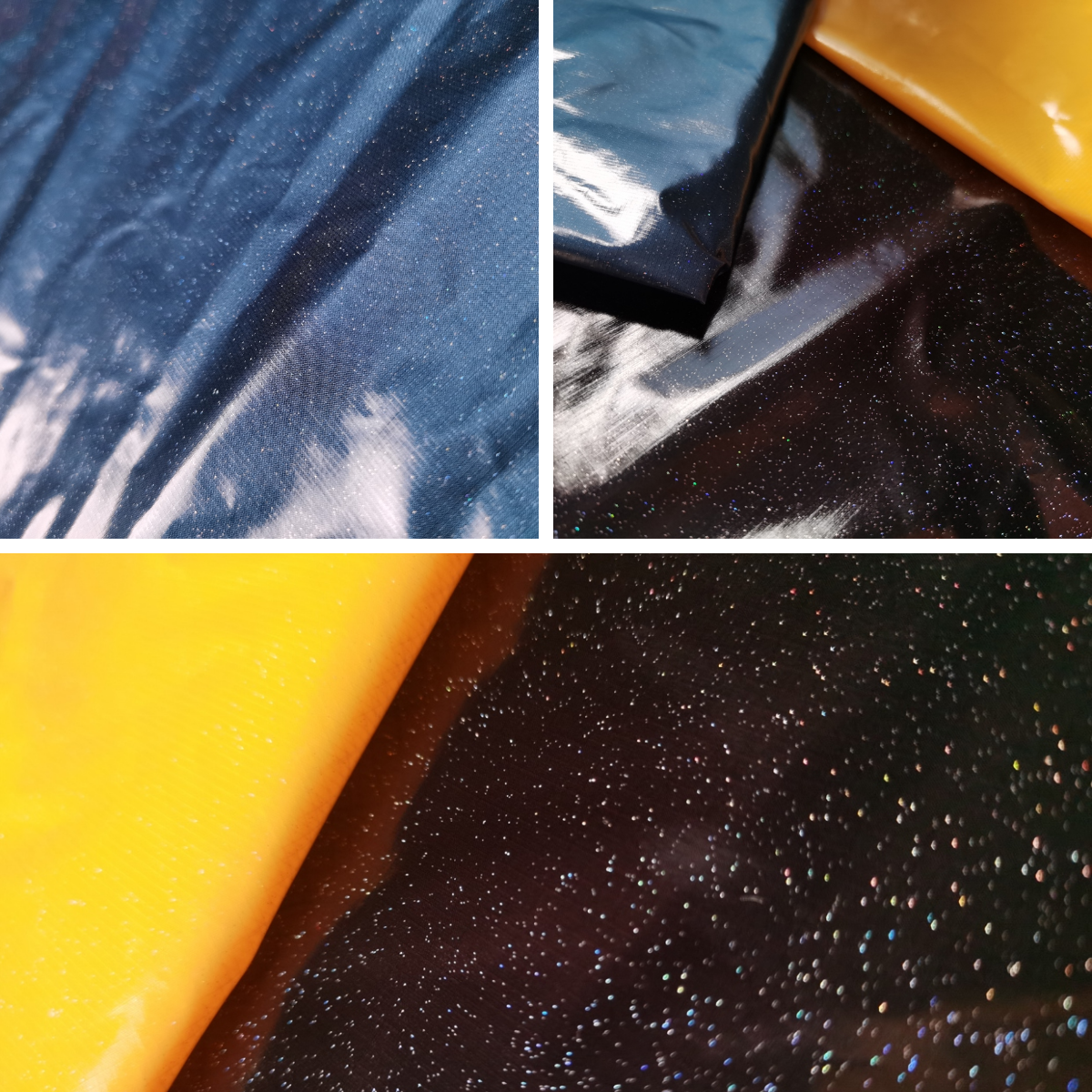 這種面料表面具有鏡面,閃光的特點,耀眼奪目,精致浪漫。質地有點偏硬,具有很強的立體感和可塑性,耐高水壓的特性,成就了面料的堅韌不易損壞。表面的閃光點很像星空中忽明忽暗的恒星,很好的迎合了年輕人的喜好。